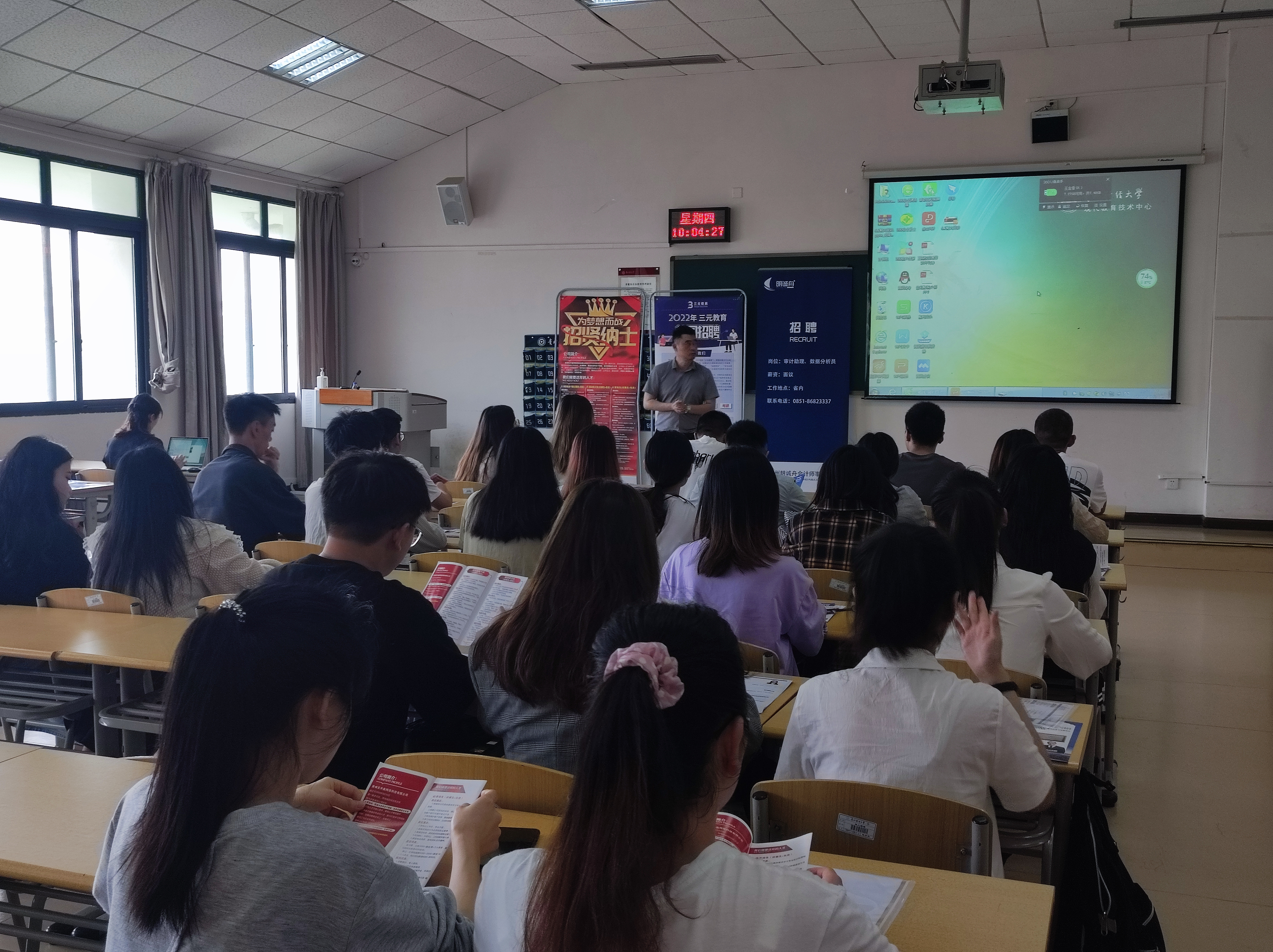 在招聘会中,贵州晨翌财务服务有限公司、贵州东升鑫网络科技有限公司以及贵州省会计服务行业协会3家单位来公司进行人才招聘,大概有50余位同学参加了本次双选会。