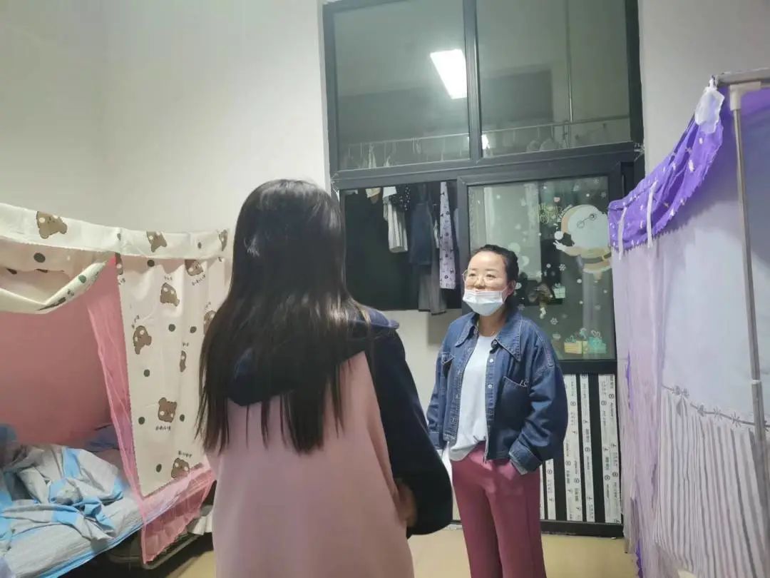 这是2020级本科生辅导员杨晓华老师。接到公司疫情防控电话第一时间,她立即简单收拾衣物赶往公司,参与公司负责点位的核酸检测工作,多次深入员工寝室安抚员工,以及全力配合公司报送各项数据等等。无论深夜、凌晨,始终坚持在岗。面对疫情,她始终牵挂着班上每一位同学的健康与平安。于是她努力做到“防控教育在线、健康关爱在心”,用实际行动为防控疫情的战“疫”助力。