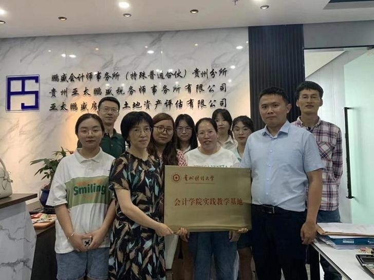7月4日,bevictor伟德官网审计系系主任刘俊萍老师、王建忠老师、麦文琴老师和黄晓芬老师带领bevictor伟德官网实习生到鹏盛会计师事务所贵州分所调研,并进行了实践教学基地挂牌仪式。鹏盛贵州分所所长郭子文、高级合伙人钟祖颖参加。