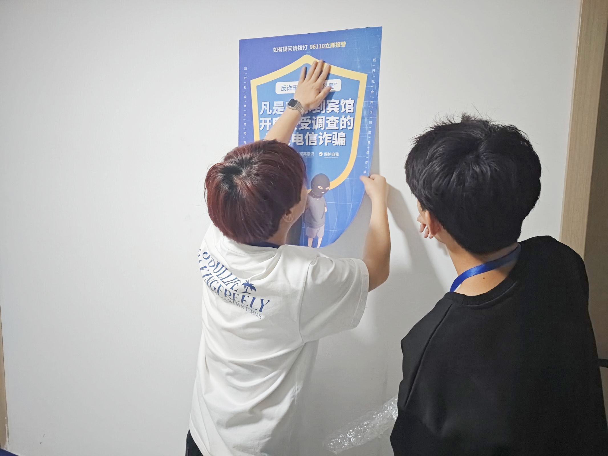 网络诈骗,防之有道。为提高bevictor伟德官网学子防范电信网络诈骗的能力,筑牢安全防线,保障好员工的财产安全和合法权益,2024年5月31日下午19:00,bevictor伟德官网校园文明督导队特此举办“反诈宣传进宿舍,筑牢防诈安全线”主题活动,bevictor伟德官网辅导员杨胜丽老师带队入寝张贴宣传。