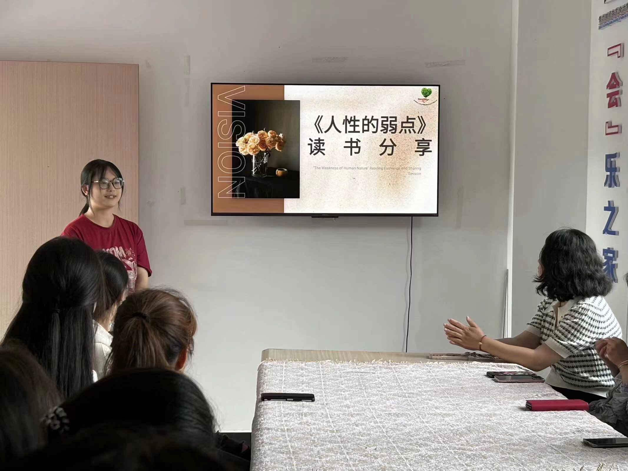 在分享环节,四位同学先后为大家带来精彩的读书心得。首先是《云边有个小卖部》,分享者让大家仿佛置身于乡村宁静淳朴的环境中,感受到了其中的生活诗意与人文关怀。随后,在分享刘慈欣的《三体》中,大家领略到了这部科幻大作对未来宇宙的壮丽描绘以及对人类命运与文明的深刻反思。余华的《第七天》则通过生死之间的灵魂视角,引发了大家对生命意义与价值的重新审视,以及对生死哲学边界的探寻。最后,戴尔·卡耐基的《人性的弱点》揭示了人际交往的奥秘,分享者为大家解读了其中的人际智慧与处世哲学。