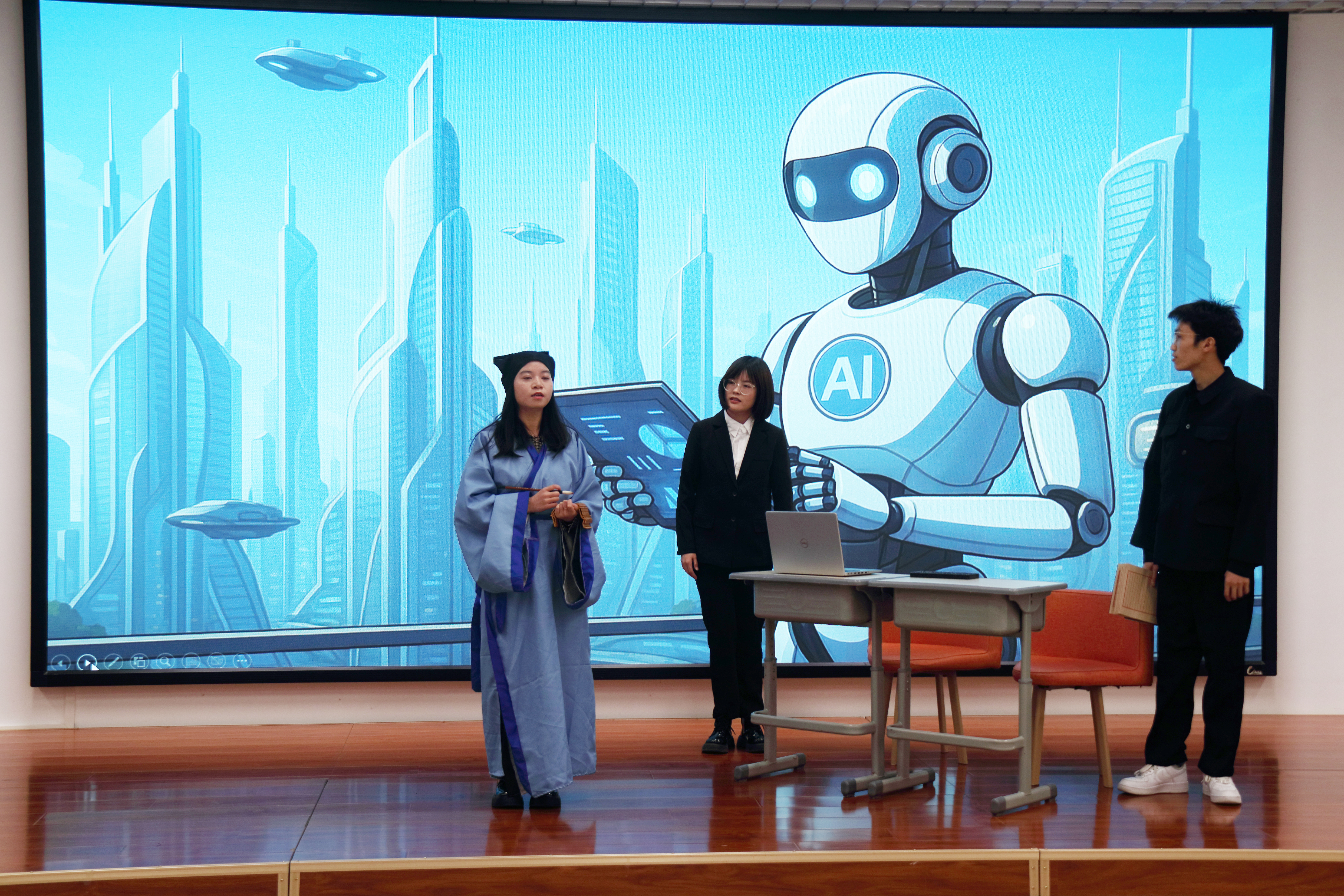 班会以一场穿越千年的舞台剧《会计的时光机与AI的奇遇》拉开序幕,生动展现从算盘到人工智能的会计技术变革。杜剑在互动中指出,AI将重构会计行业生态,未来会计人需从“账房先生”转型为“决策智囊”,强调“会用AI的会计师必将取代不用AI的同行”,鼓励员工掌握数据分析、跨界融合等核心能力。