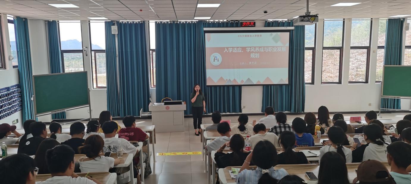 黄忠莉以“新征程再出发”为主题,对职业规划重要性、成长成才全面发展、大学四年规划进行了详细讲解。她指出:“大学是人生从校园走向社会的关键过渡期,四年的规划质量直接决定成长高度。大学教会你的不只是知识,更是独立思考的能力、直面挑战的勇气、拥抱变化的心态。”她希望同学们明确德智体美劳全面发展目标,全方位提升专业素养与综合能力。