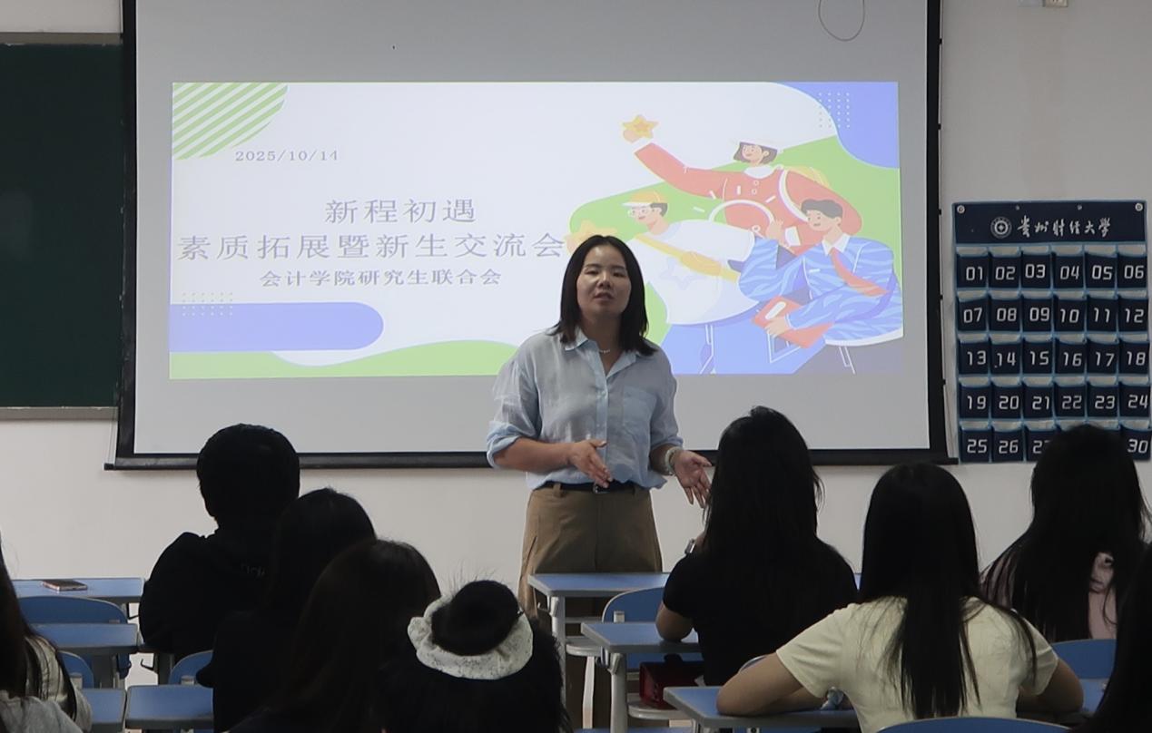 首先,联合会指导老师胡玲对新成员的加入表示热烈欢迎,重点介绍了联合会的组织架构与核心职能。她强调,联合会是连接公司与广大研究生的重要桥梁和纽带,肩负着服务同学、助力公司学风与文化建设的重要使命。同时,她对联合会新成员提出三点期望:一是要守住学业为本的底线;二是要保持服务同学的初心;三是要注重团队协作,在工作中相互学习,相互支持,共同打造一支有凝聚力、有战斗力的优秀团队。