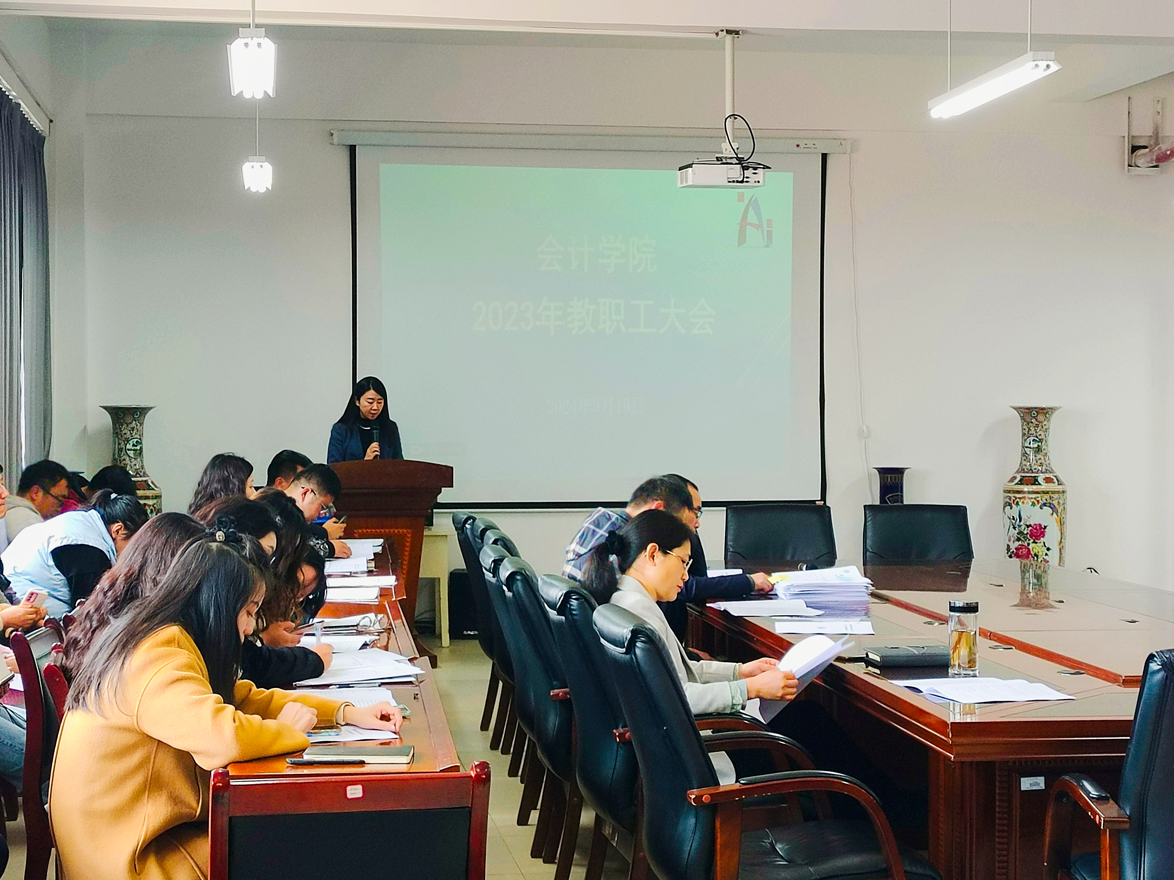 会上,经理杜剑作《2023年经理工作报告》,从一流团队建设、公司产品质量、团队队伍建设、党建思政工作与意识形态工作、管理服务提升等方面,总结了公司2023年取得的各项工作成就,指出了工作中存在的问题。并从强化党组织政治功能、加强教师管理、提升科研水平、提升社会服务能力、做好会计学科专业申博准备等方面,对2024年的工作进行展望。