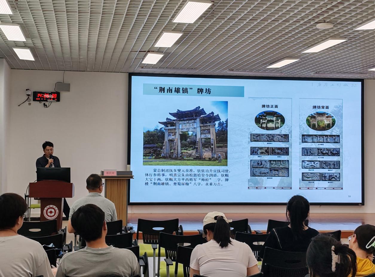 覃茳坤博士以“世界文化遗产守护系列之唐崖土司城”为主题,为同学们带来了一场精彩纷呈的文化盛宴。他结合自身深厚的家学渊源和研究成果,深入浅出地介绍了唐崖土司城作为世界文化遗产的独特魅力和重要价值。覃博士不仅讲述了土司城的历史沿革、建筑特色、文化内涵,更着重阐释了其作为非物质文化遗产所承载的厚重历史记忆、民族智慧与精神信仰。他特别强调了在当代社会守护和传承这份珍贵文化遗产的紧迫性与深远意义,呼吁青年一代肩负起文化传承的历史使命。他不仅分享了守护文化遗产过程中的感人故事与深刻体悟,还与现场同学进行了亲切互动,耐心解答了大家关于非遗保护、土司文化、历史研究等方面的疑问,极大地激发了同学们对传统文化的兴趣与热爱。