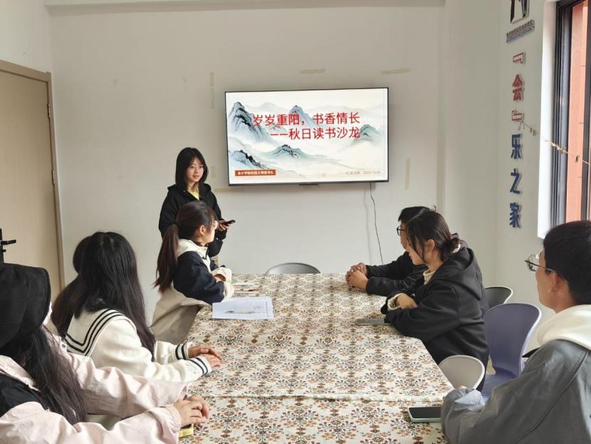 为传承中华优秀传统文化,营造浓厚校园读书氛围,丰富同学们的课余文化生活,2025年10月24日,bevictor伟德官网校园文明督导队于一站式员工服务社区组织开展“会院书香”系列活动第七期——“岁岁重阳,书香情长”秋日读书沙龙交流会。
