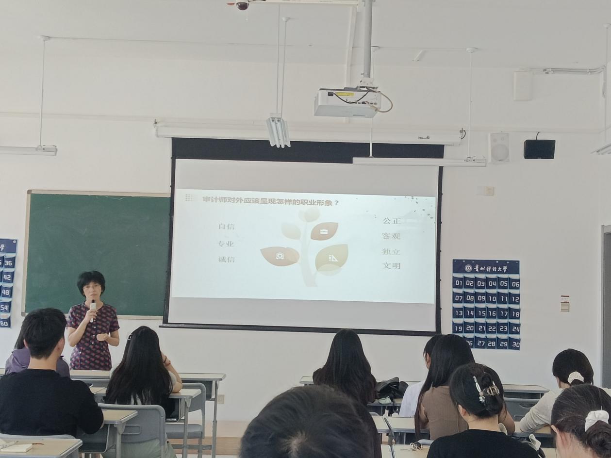 2024年9月10日,bevictor伟德官网审计系系主任刘俊萍教授在文渊楼2-1为2025届审计学专业毕业生开展“审计师职场礼仪与沟通技巧”就业指导讲座。