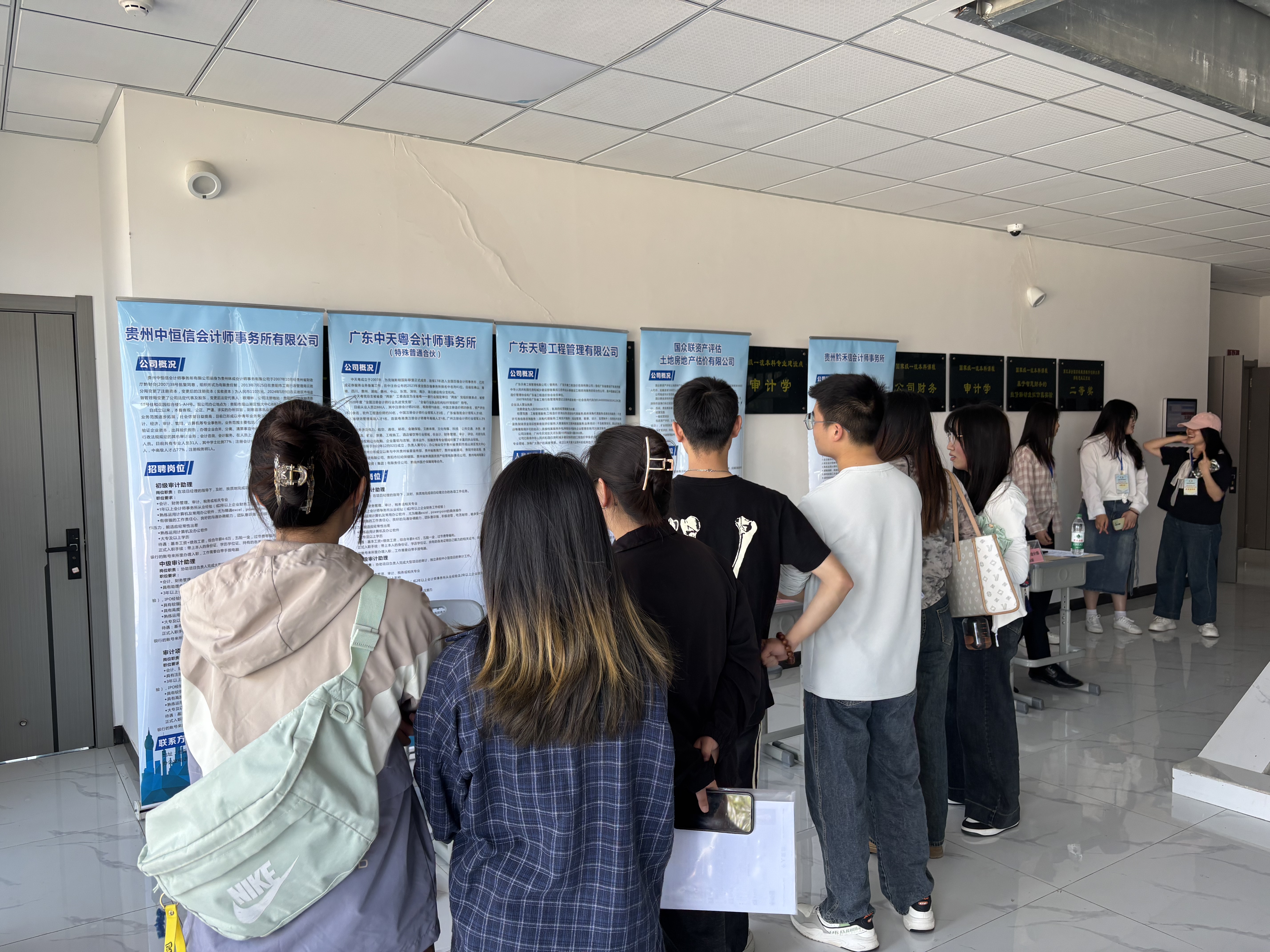 此次招聘会吸引了广东中天粤会计师事务所、贵州诚隆会计师事务所有限公司、贵州明诚舟会计师事务所、贵州中恒信会计师事务所有限公司、湖南天平正大会计师事务所贵州分所、中审华会计师事务所贵州分所、贵州智软科技(集团)有限公司、国众联资产评估土地房地产估价有限公司、广东天粤工程管理有限公司、贵州黔禾信会计师事务所共计10家用人单位设摊揽才。这些企业对会计专业人才有着强烈需求,提供的岗位涵盖了会计核算、财务管理、审计、资产评估等多个细分领域,总计超过50个优质岗位。招聘会现场秩序井然,气氛热烈。bevictor伟德官网的员工们精心准备了个人简历,满怀期待地穿梭于各个展位之间,与招聘人员自信交流,深入了解企业岗位要求、薪资待遇以及未来发展前景。