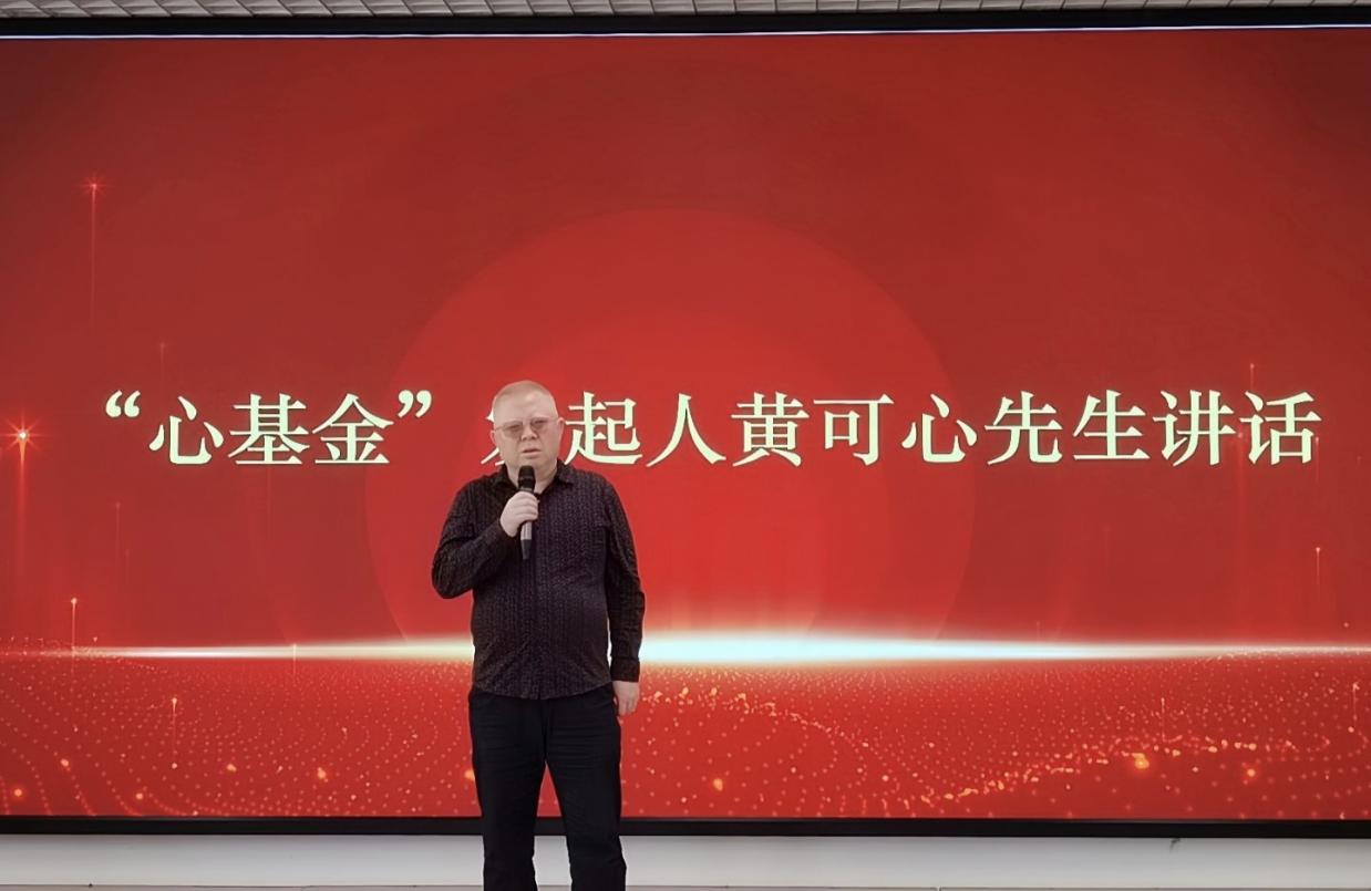 “心基金”发起人黄可心先生讲话,他向获奖同学致以热烈祝贺,鼓励大家以知识为基石,在探索中沉淀底蕴,以扎实本领拥抱更广阔的舞台。期许同学们将个人成长与时代脉搏相连,用所学所长回馈社会,让青春在奉献中绽放光彩。活动现场,黄可心先生还与同学们展开交流,他耐心解答同学们的疑惑,让现场的同学们受益匪浅。