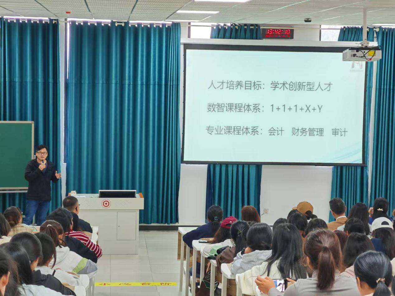 黄忠莉围绕理想信念和职业生涯规划展开讲解。她指出诚信是立身之本,要具备职业道德,学会尊重他人,学会理解包容。 她希望同学们要以修身为核心提升专业知识,扎实掌握各项技能。